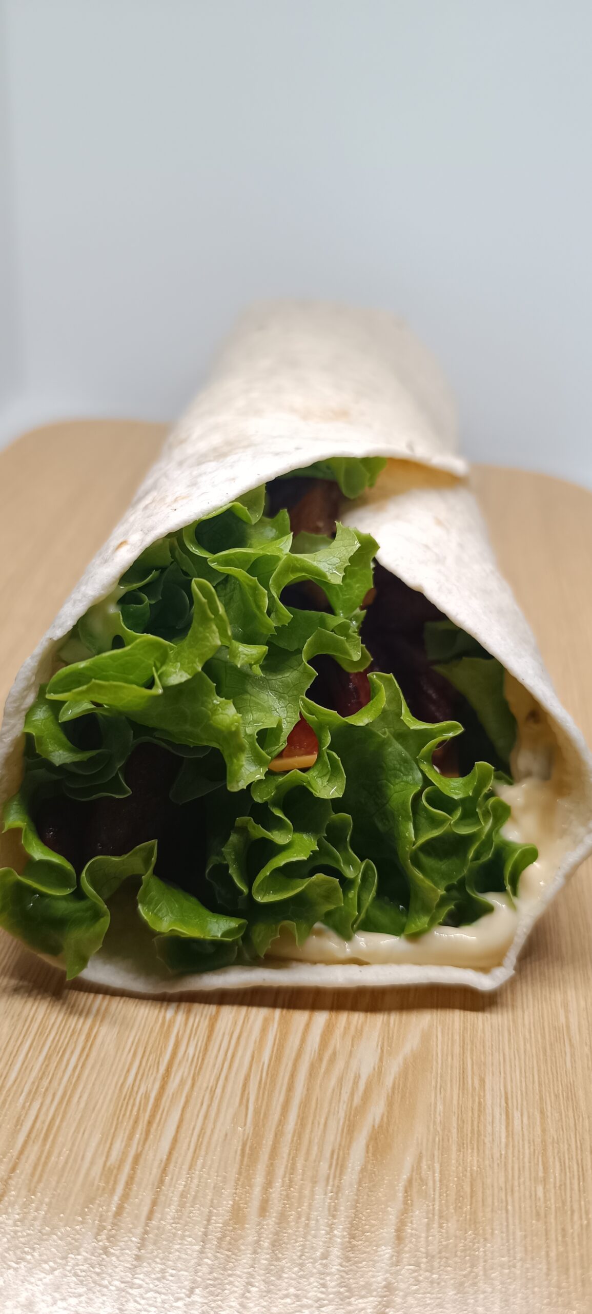 Tortilla, tranche de jambon, cheddar, salade, tomate, sauce (frites et boisson comprises)