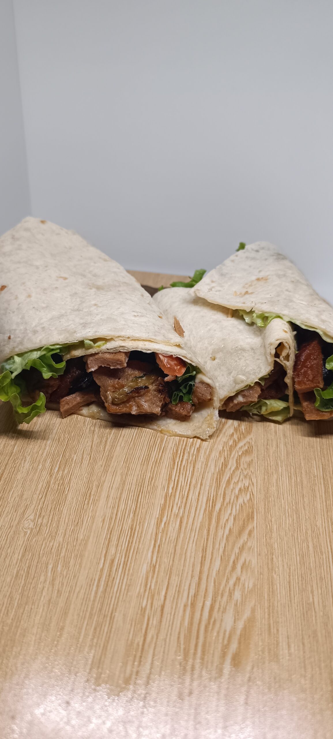 Tortillas, poulet grillé, bacon grillé, cheddar, salade, tomate, sauce